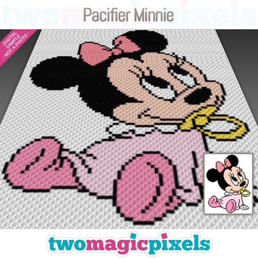 "Pacifier Minnie" is a digital graph (available in PDF format only) that can be used to crochet a blanket using various techniques, such as C2C, Mini C2C, SC, HDC, DC, TSS or Bobble Stitch.Alternatively, you can use this product for cross stitch, knitting, hama beads, plastic canvas, diamond painting and other crafts.